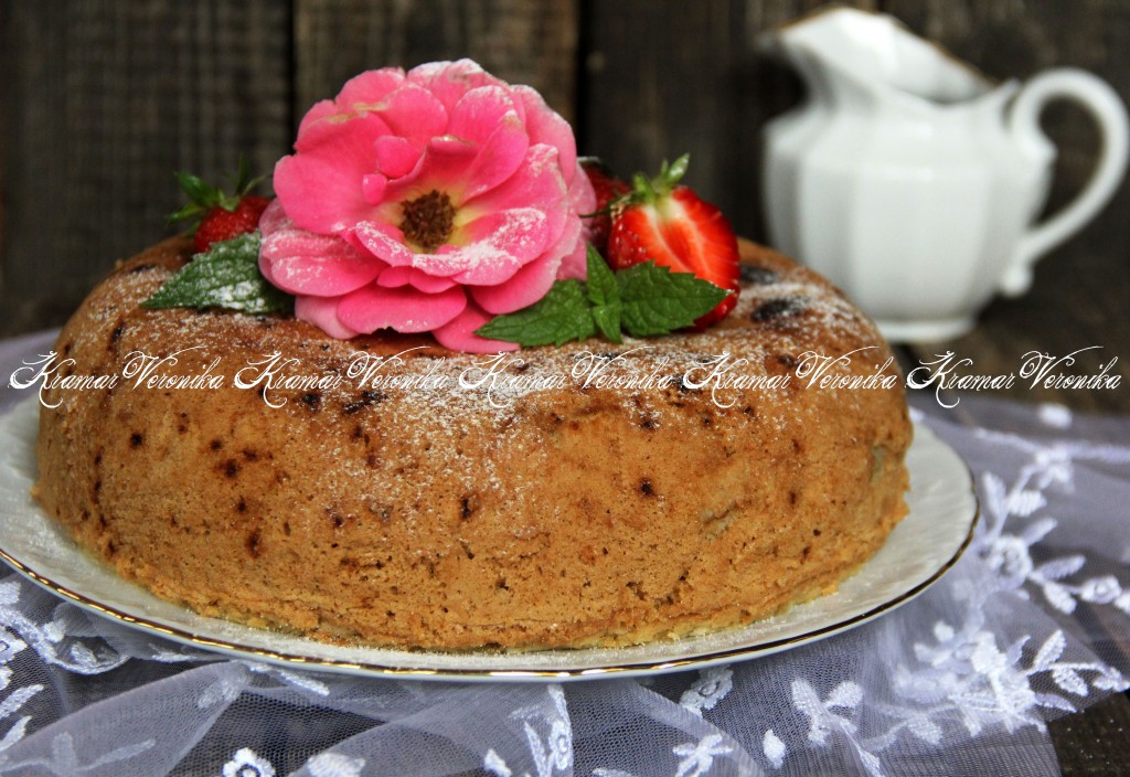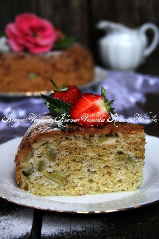 Посмотрите, каким пышным пирог получился в разрезе. Испеките в мультиварке бисквитный пирог с ревенем и насладитесь его нежным вкусом!