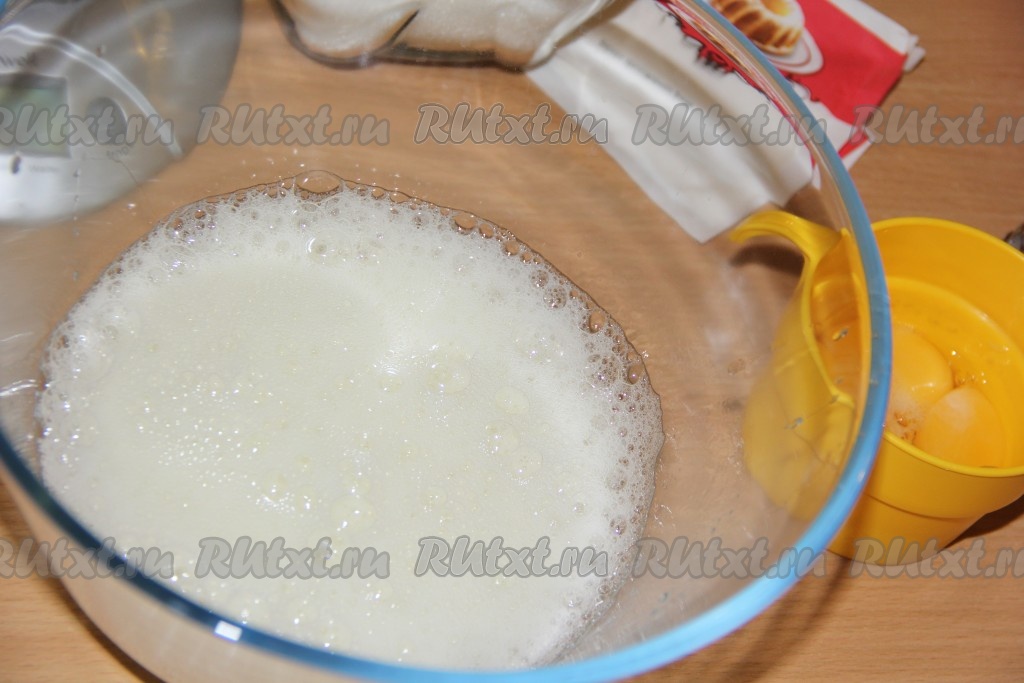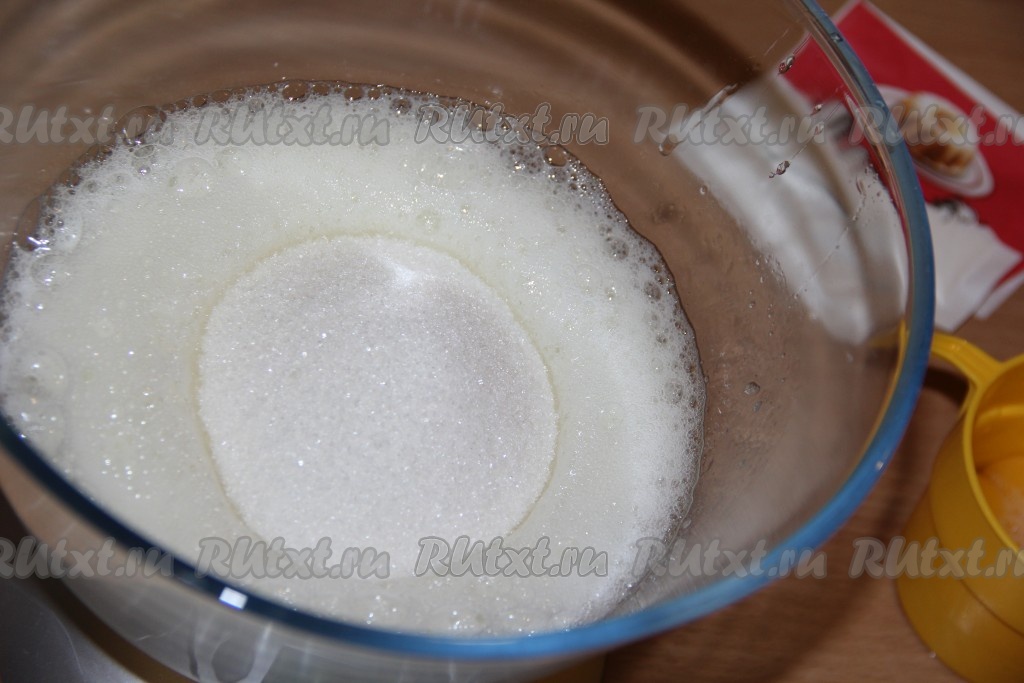 Добавить к белкам соль и взбить миксером до пышной пены.