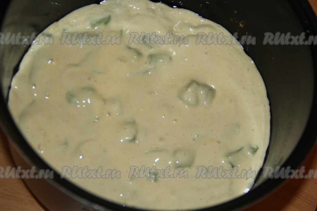 Добавить ревень в тесто и аккуратно перемешать. Смазать чашу мультиварки сливочным маслом, выложить тесто в чашу.
