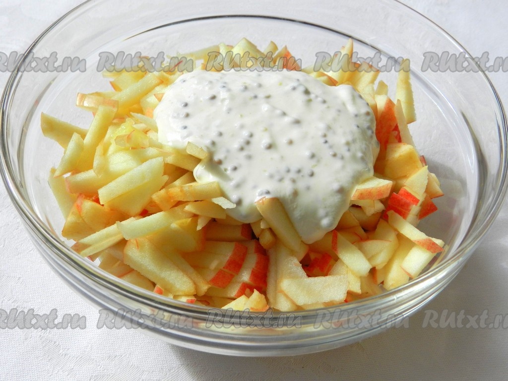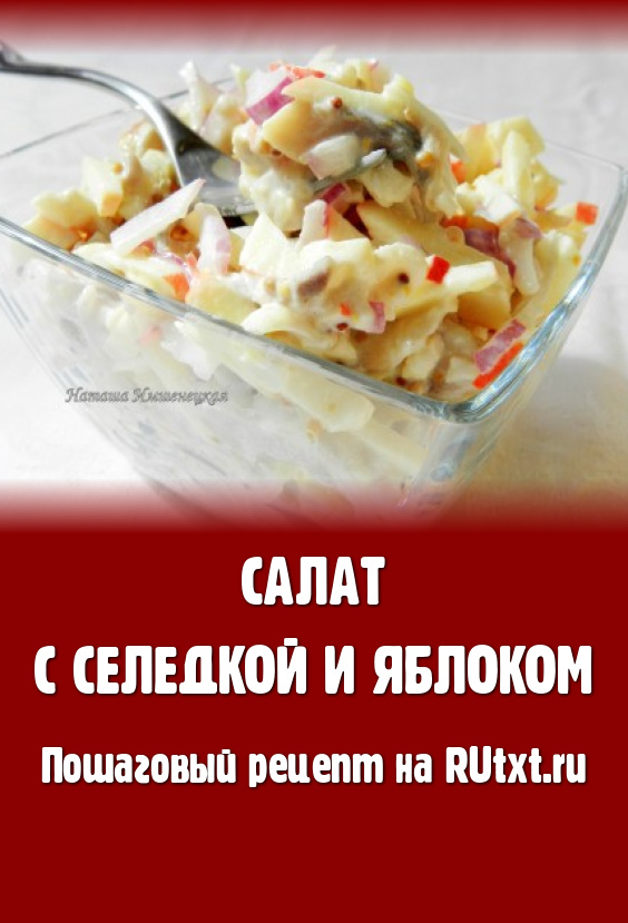 Вкусный пикантный салат с селедкой и яблоками готов.