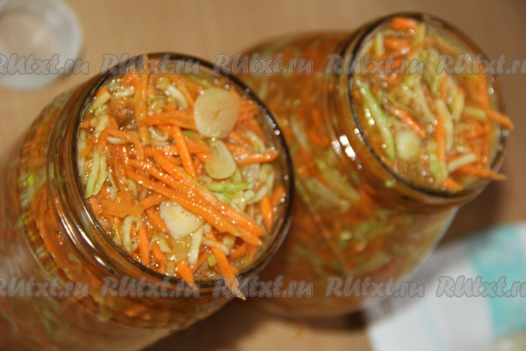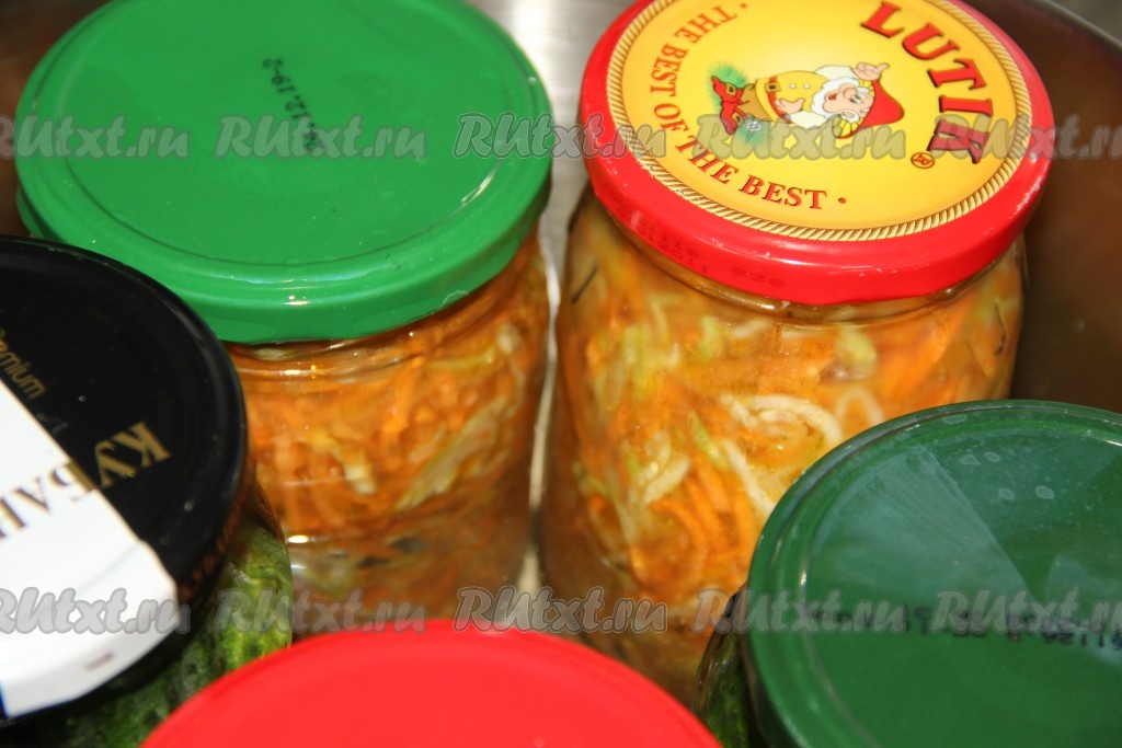 Готовые банки с кабачками и морковкой в маринаде достать из кастрюли, закрутить крышками. Перевернуть их вверх дном, укутать (я укутываю в одеяло). А после полного остывания переставить баночки в прохладное место на хранение.