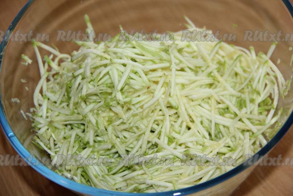 На тёрке для корейской морковки натереть кабачки.