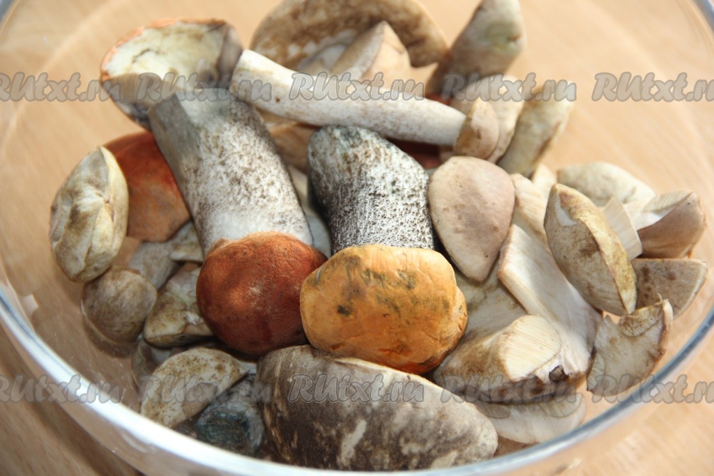 Грибы очистить от листиков и травы, затем хорошо промыть водой.