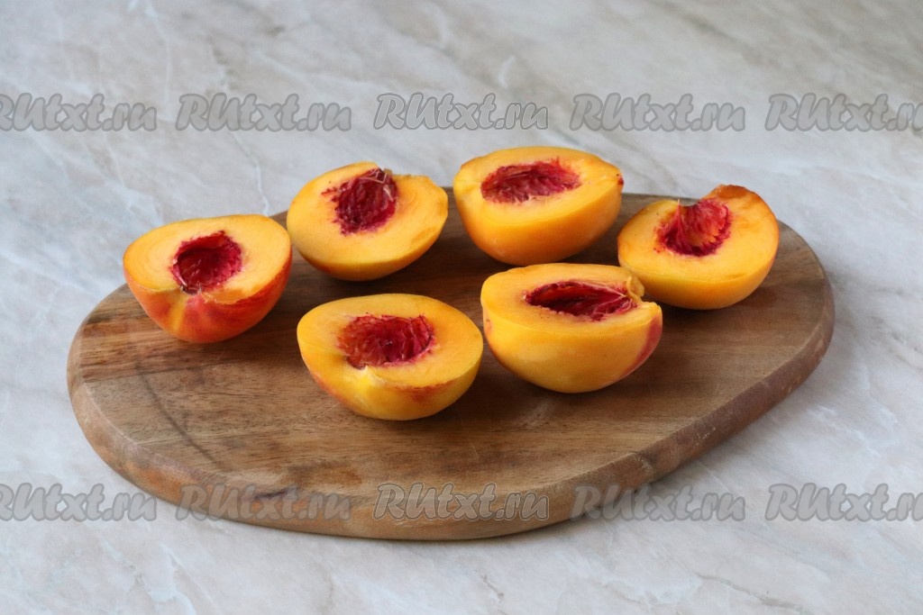 Персики тщательно вымойте под холодной проточной водой, обсушите и удалите косточки.