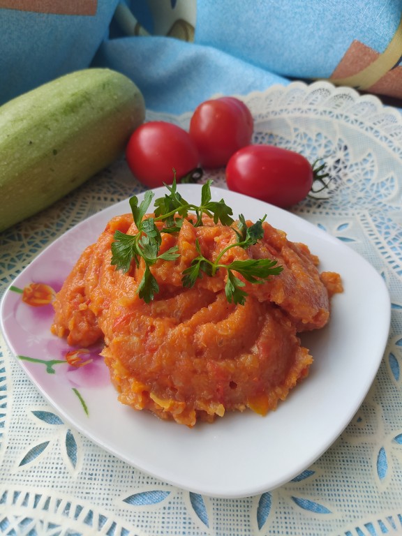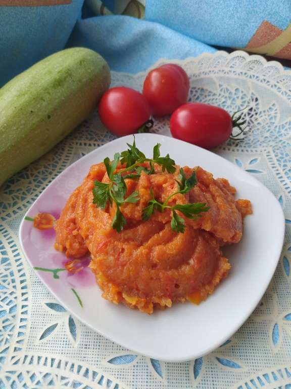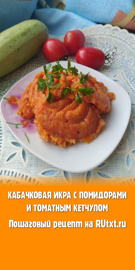 Очень понравился простой рецепт кабачковой икры с помидорами, морковью, луком и небольшим количеством томатного кетчупа. Икра получается не разваренной, слегка похрустывает. Такая яркая, аппетитная икра из кабачков станет отличной закуской.