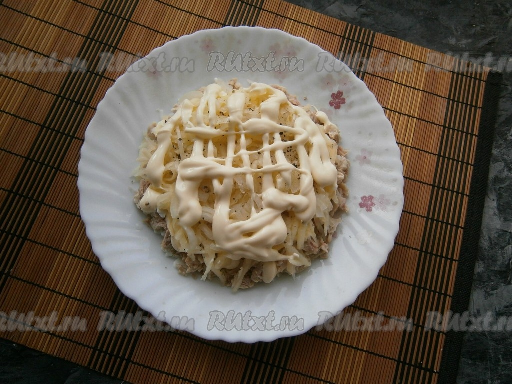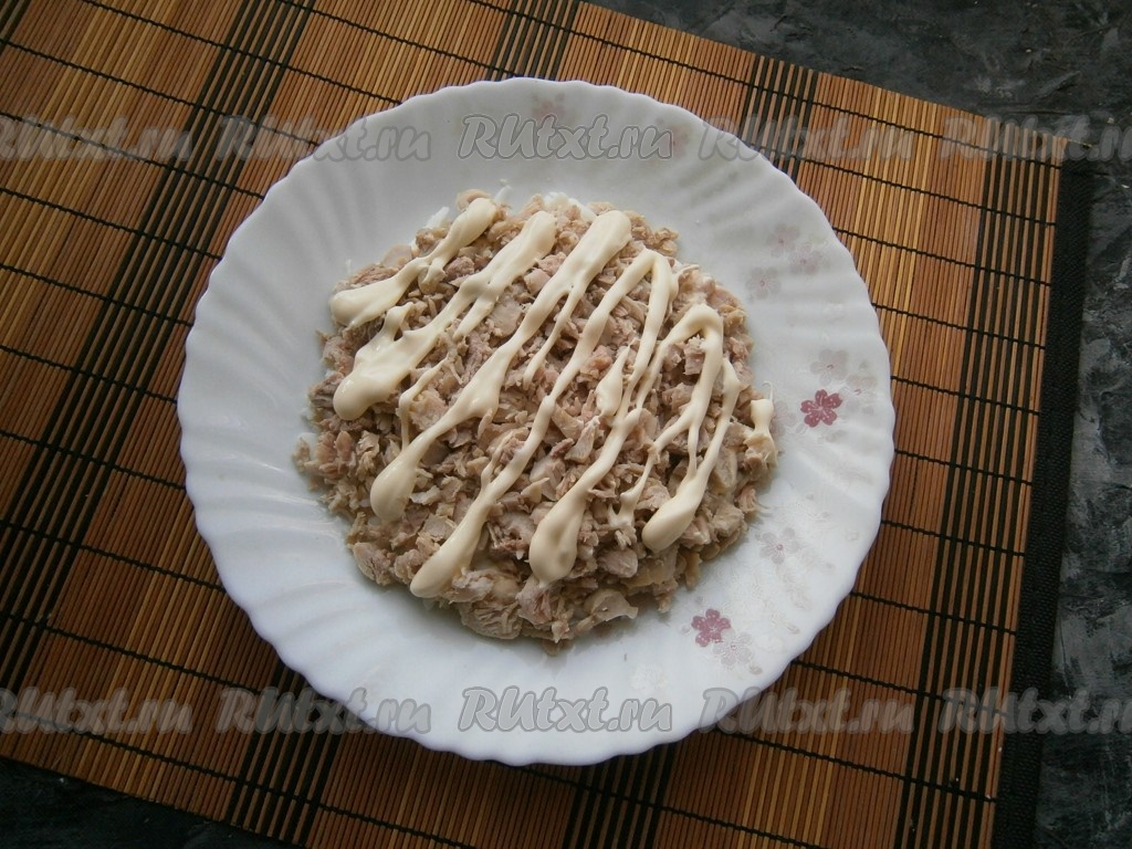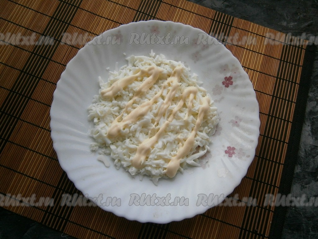 Достаточно щедро нанести на этот слой майонез.