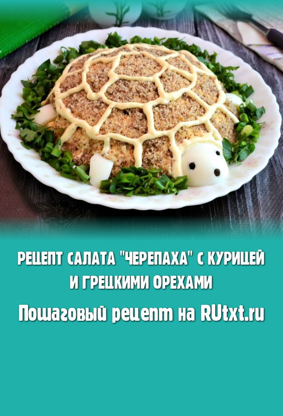 Вкусный и интересный салат "Черепаха", приготовленный с курицей и грецкими орехами, можно подавать на праздничный стол на радость своим близким и гостям.