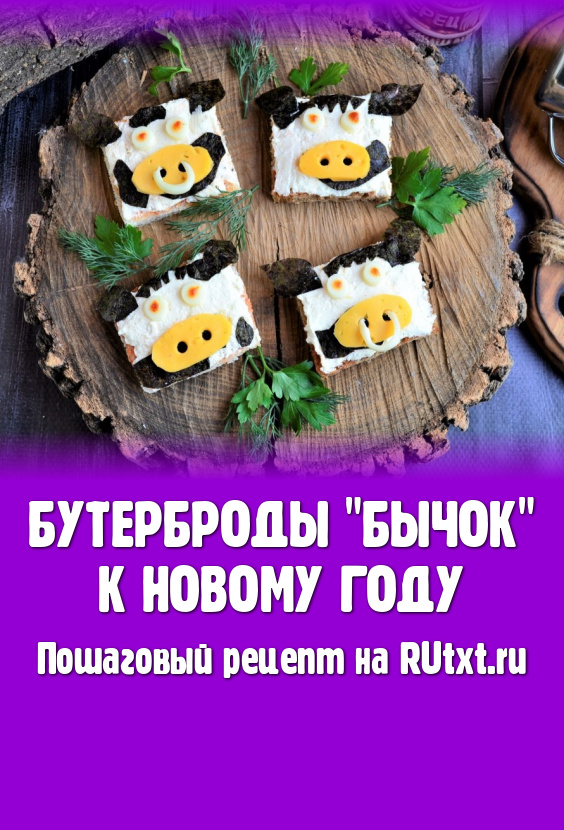 Вкусные, яркие тематические бутерброды "Бычок", приготовленные к Новому году, украсить зеленью и подать к праздничному столу!