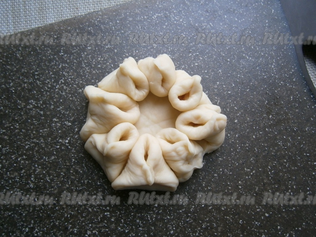Приподнять каждую разрезанную часть и пальцами свернуть к внешней стороне, придавить края (см. фото).