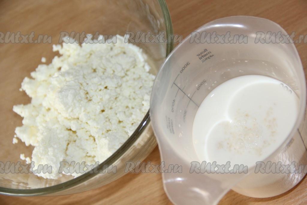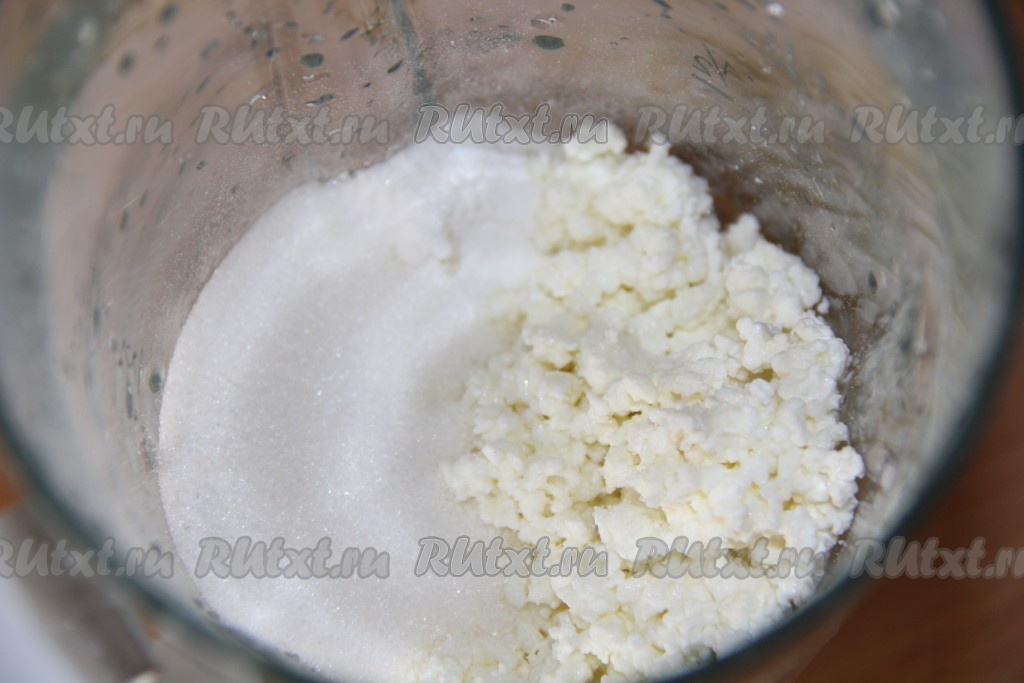 В чаше блендера соединить творог, сахар и не горячую молочно-желатиновую смесь.