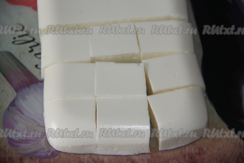 Нарезать зефир из творога на квадратики. По желанию, можно обвалять зефирки в сахарной пудре.