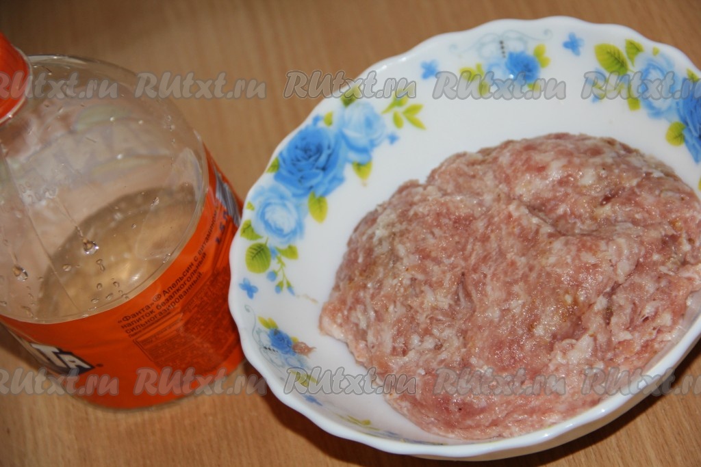 Хорошо вымесить фарш и поставить на 1 час в холодильник. Чистую пластиковую бутылку объёмом 1,5-2 литра разрезать пополам.