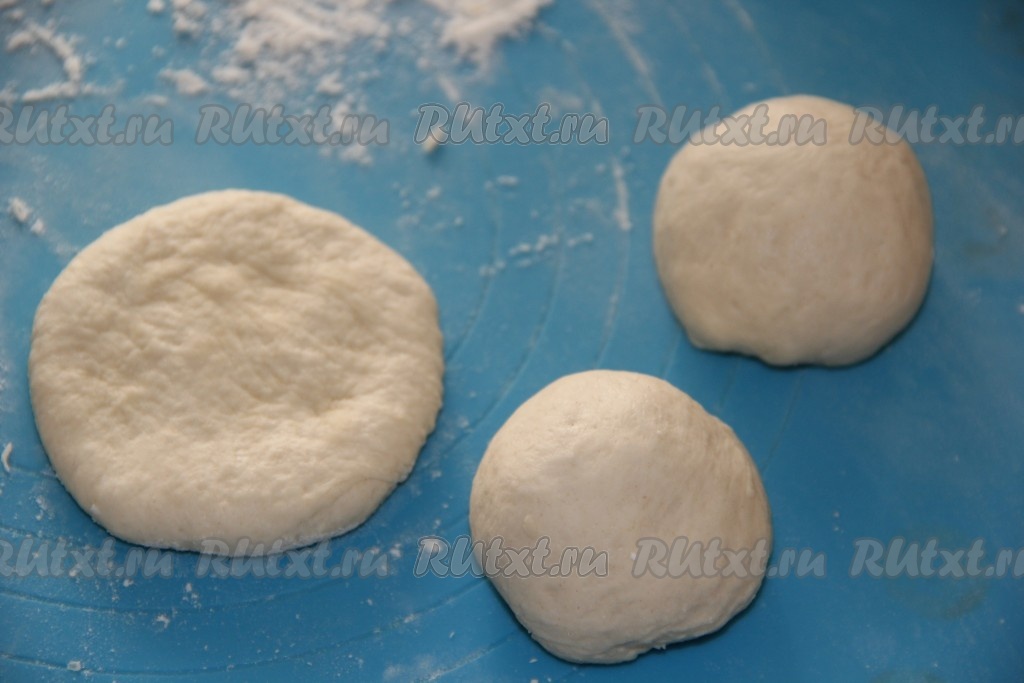 Из каждой части теста скатать шарик, а затем расплющить каждый шарит в толстую лепёшку.