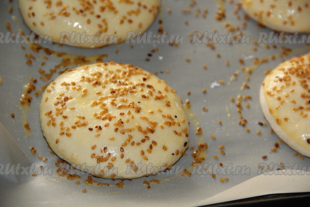 Посыпать булочки кунжутом.