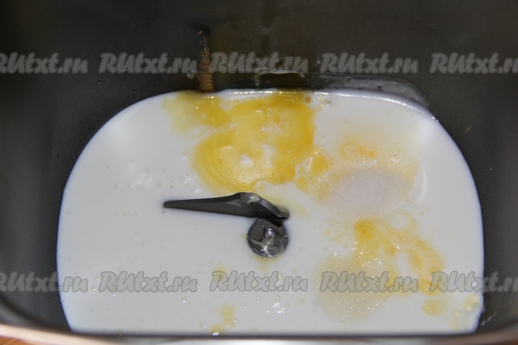 Тесто для булочек можно замесить как вручную, так и в хлебопечке. Для того чтобы замесить тесто в хлебопечке, нужно в ведёрко хлебопечки влить растопленное не горячее сливочное масло и кефир комнатной температуры.
