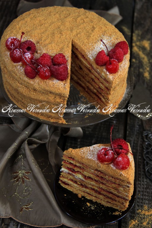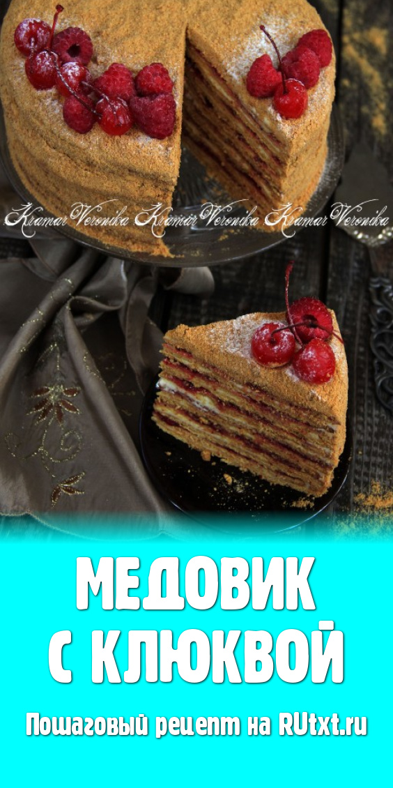 Медовик - очень вкусный торт, для приготовления которого, конечно, придётся потрудиться, но это того стоит! Предлагаю рецепт очень вкусного медовика с клюквой. Торт получается с нежной ягодной кислинкой. Крем из сметаны и сгущёнки прекрасно пропитывает коржи и делает медовик необыкновенно вкусным. Такой тортик украсит и домашнее чаепитие, и праздничный стол. Главное - дать торту хорошо пропитаться. Всем советую приготовить медовик с клюквой по этому рецепту!