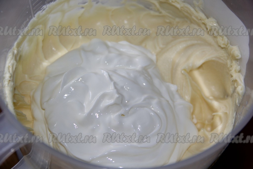 К смеси масла и сгущёнки добавить сметану, взбить на низких оборотах миксера до однородного состояния и крем для медовика готов.