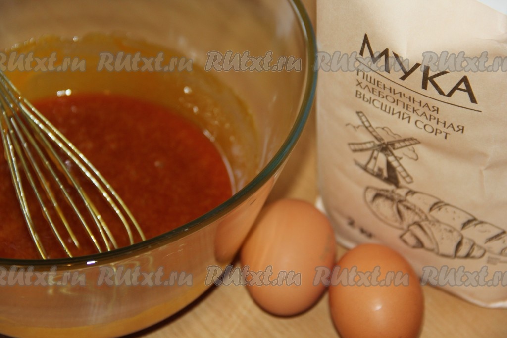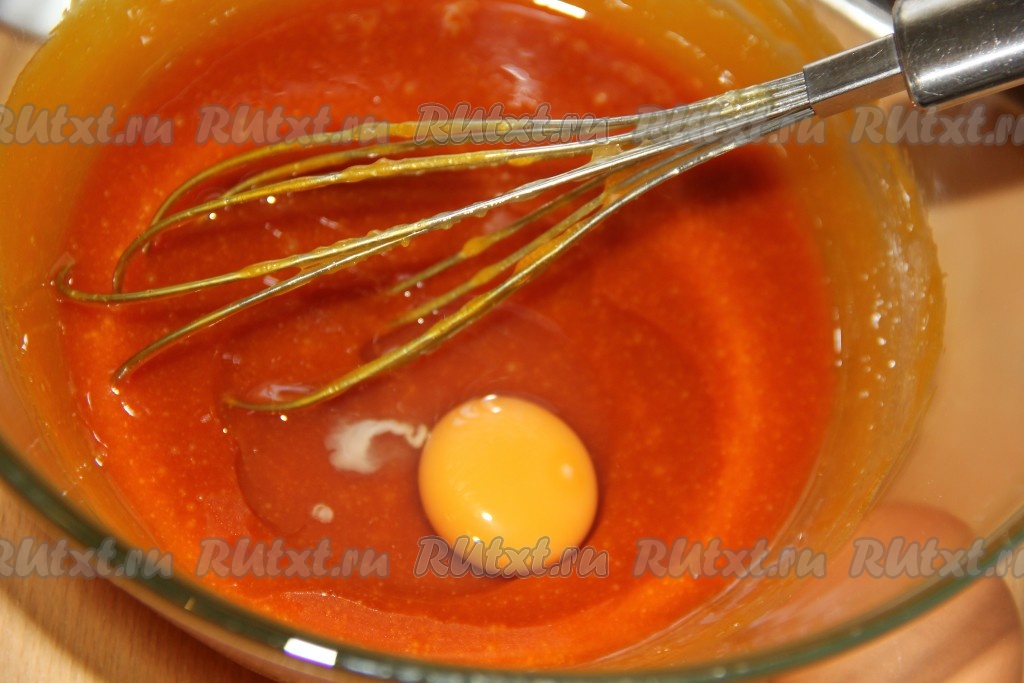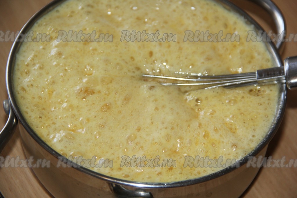 Когда масса немного остынет, вбить по одному яйца, каждый раз хорошо перемешивая венчиком.