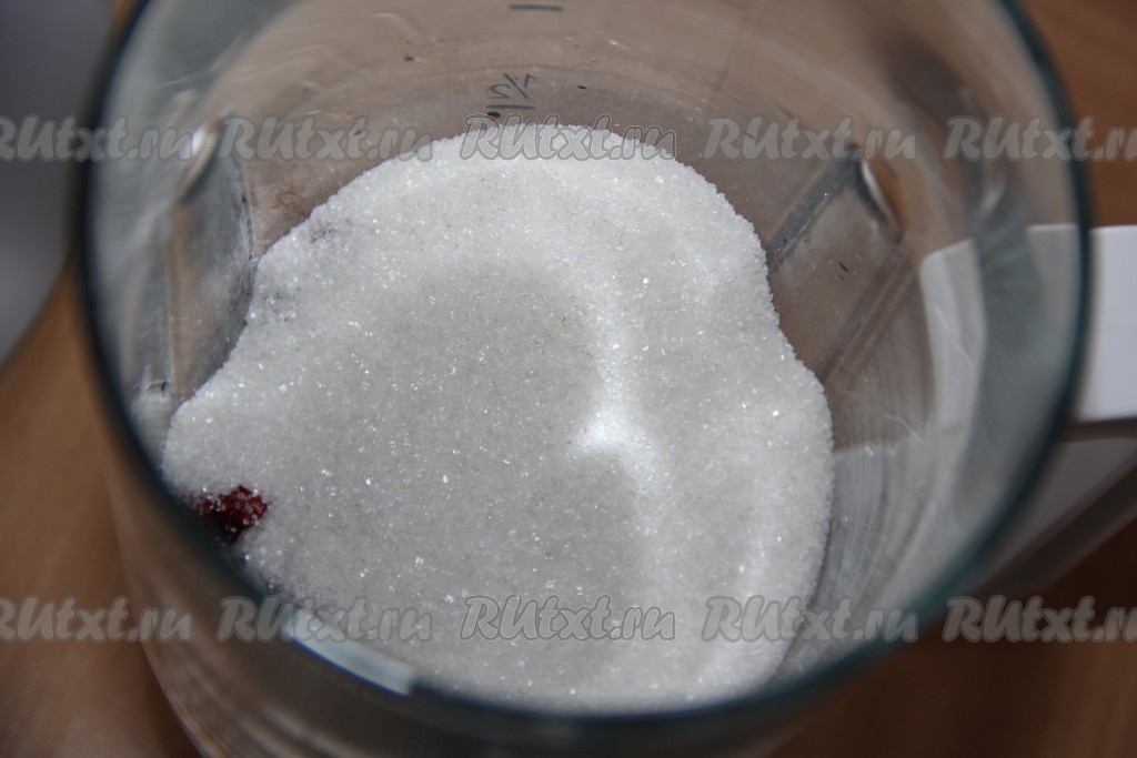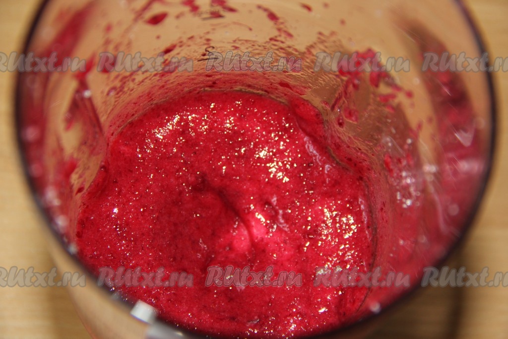 Измельчить ягоды с сахаром погружным блендером до однородного состояния.