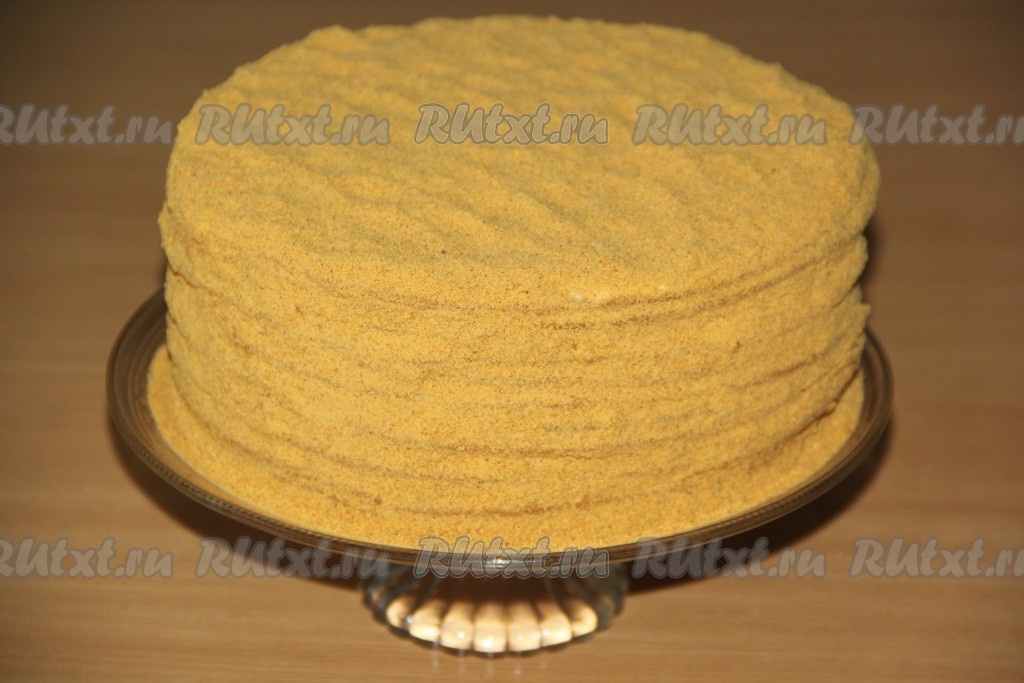 Торт сверху и с боков обсыпать крошкой и убрать в холодильник на сутки.