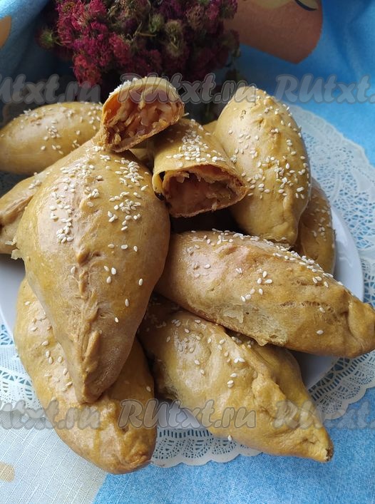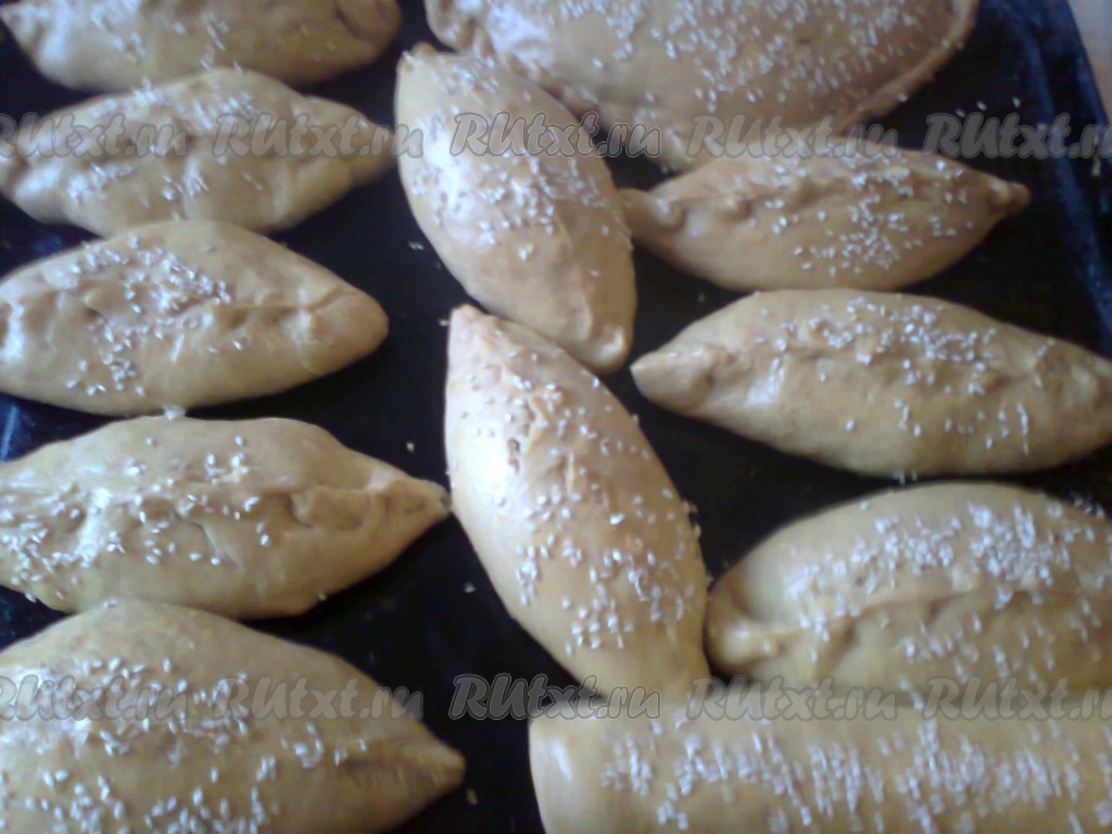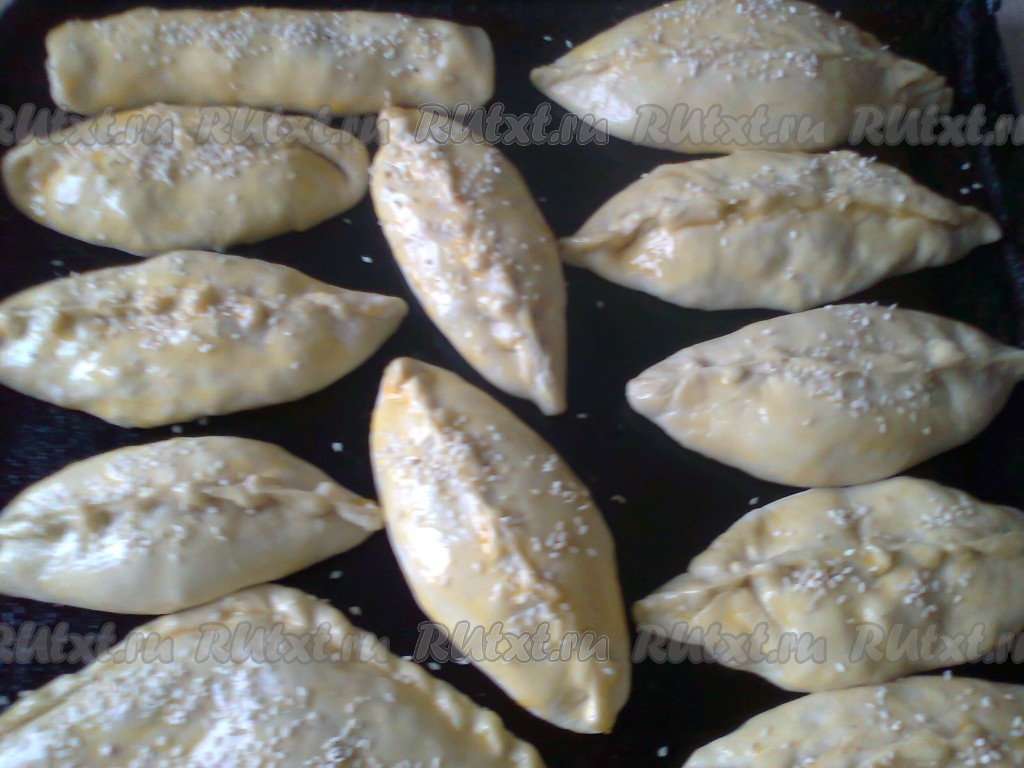 Выпекать пирожки в разогретой до 200 градусов духовке 25-30 минут (до румяности). Ориентируйтесь по вашей духовке.