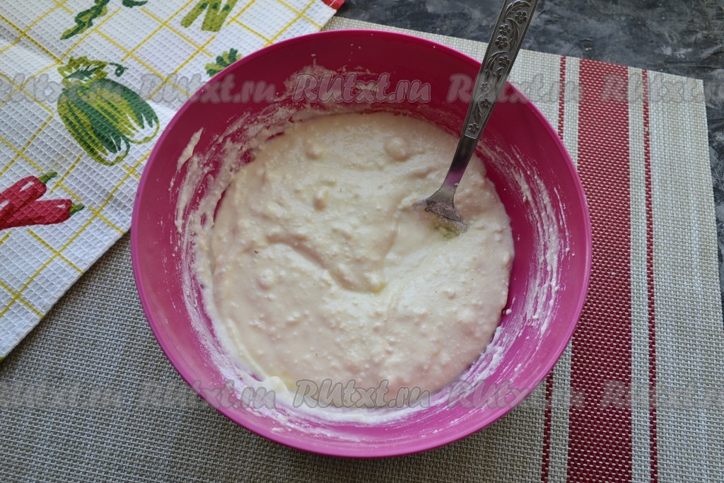 Консистенция творожной смеси должна также быть в меру густой, похожей на тесто для оладий.
