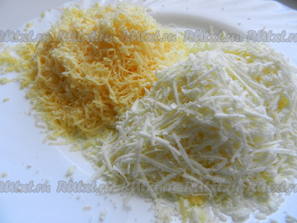 Я взяла 100 грамм брынзы и 100 грамм сыра твёрдых сортов, можно взять 200 грамм одного вида сыра.
