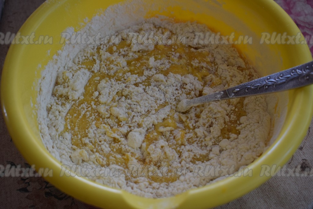 Добавляем к тесту муку и начинаем замешивать наше тесто.