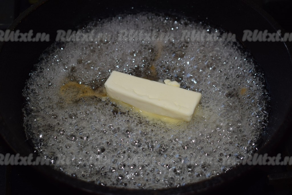 Далее добавляем кусочек сливочного масла и перемешиваем его с карамелью.