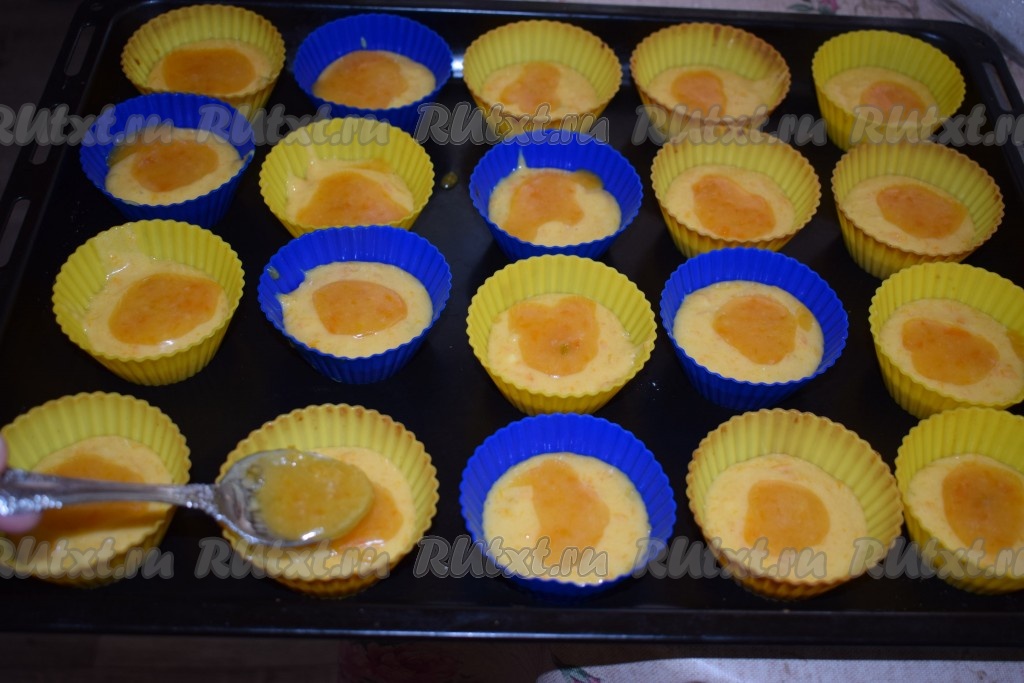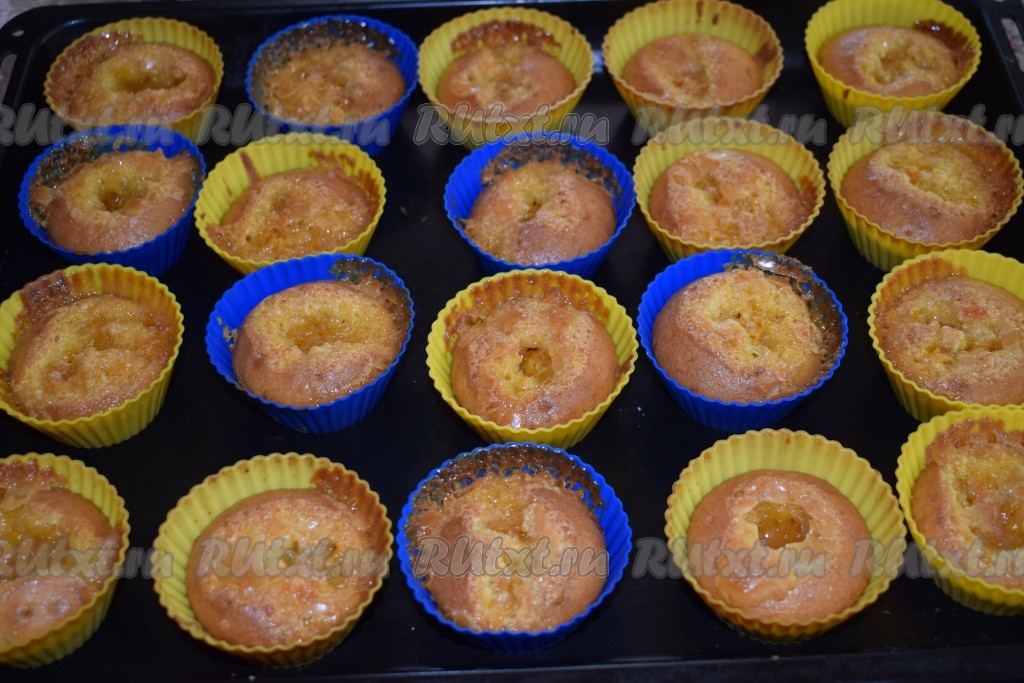 Сверху на каждый маффин выливаем по 1 чайной ложке карамели.