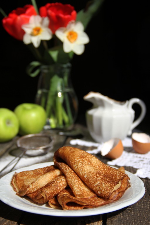 Я смазываю сковородку маслом только перед жаркой первого блина, но многое зависит от качества покрытия сковороды, поэтому при необходимости время от времени смазывайте сковороду слегка маслом.