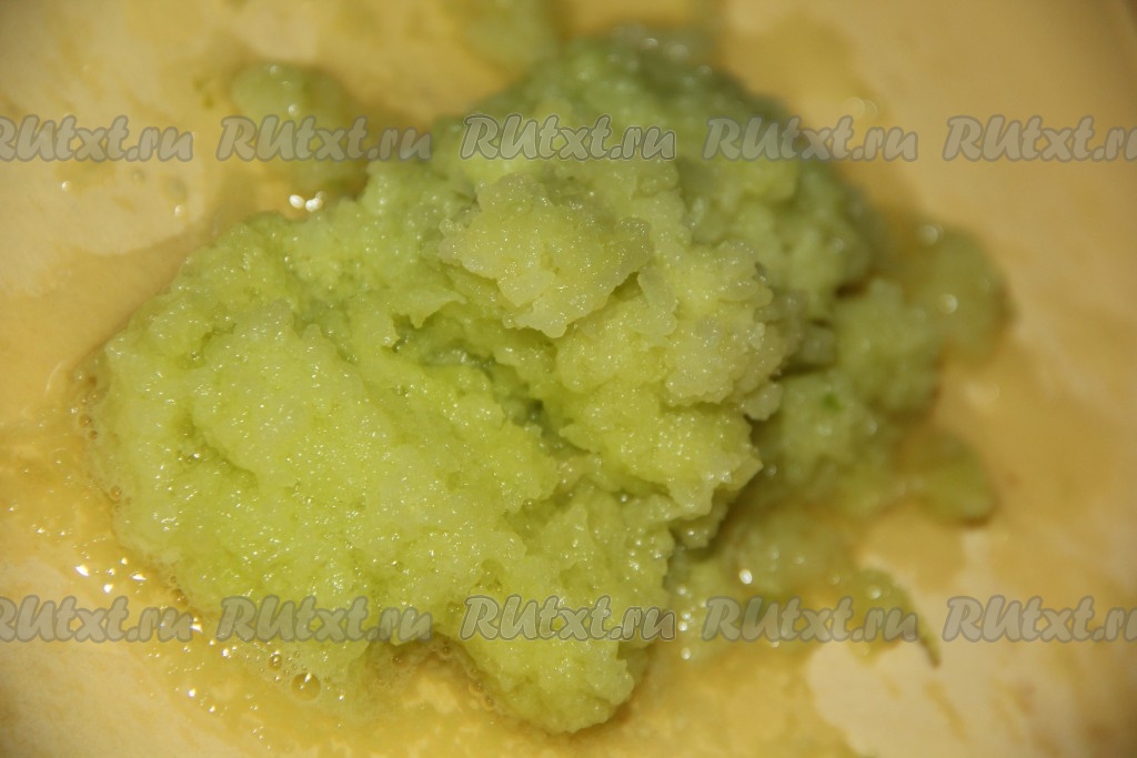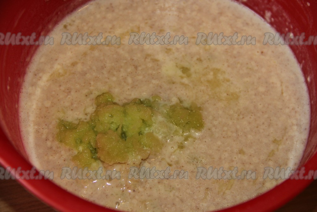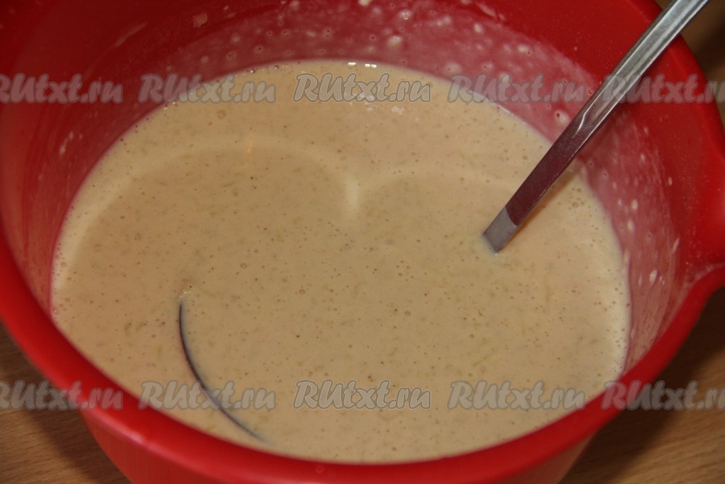 Перемешать тесто, оно получится не густым. Если тесто получилось жидковатым (многое зависит от сочности яблок), тогда всыпьте совсем немного муки.