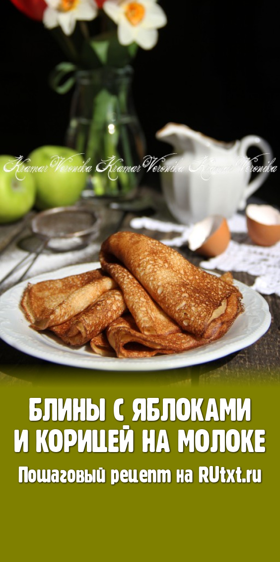 Очень вкусные, ароматные блины, приготовленные с яблоками и корицей на молоке, подать к столу с пылу с жару.