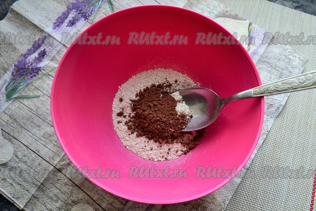 Овсяные хлопья измельчить в кофемолке, добавить какао-порошок и соль.
