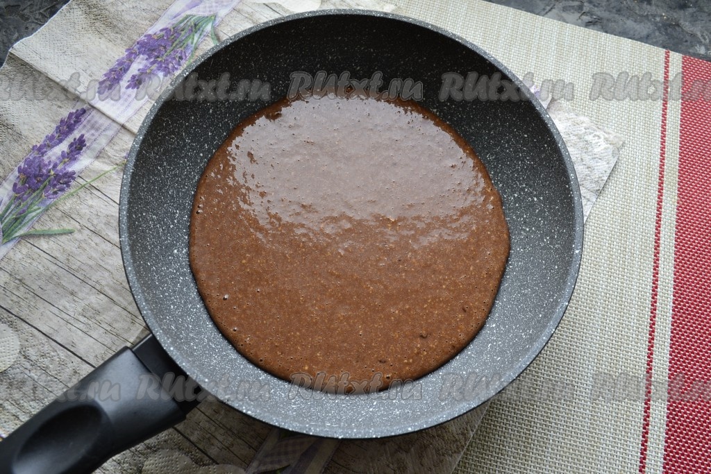 Сковороду разогреть и вылить тесто, распределив его по всему дну.