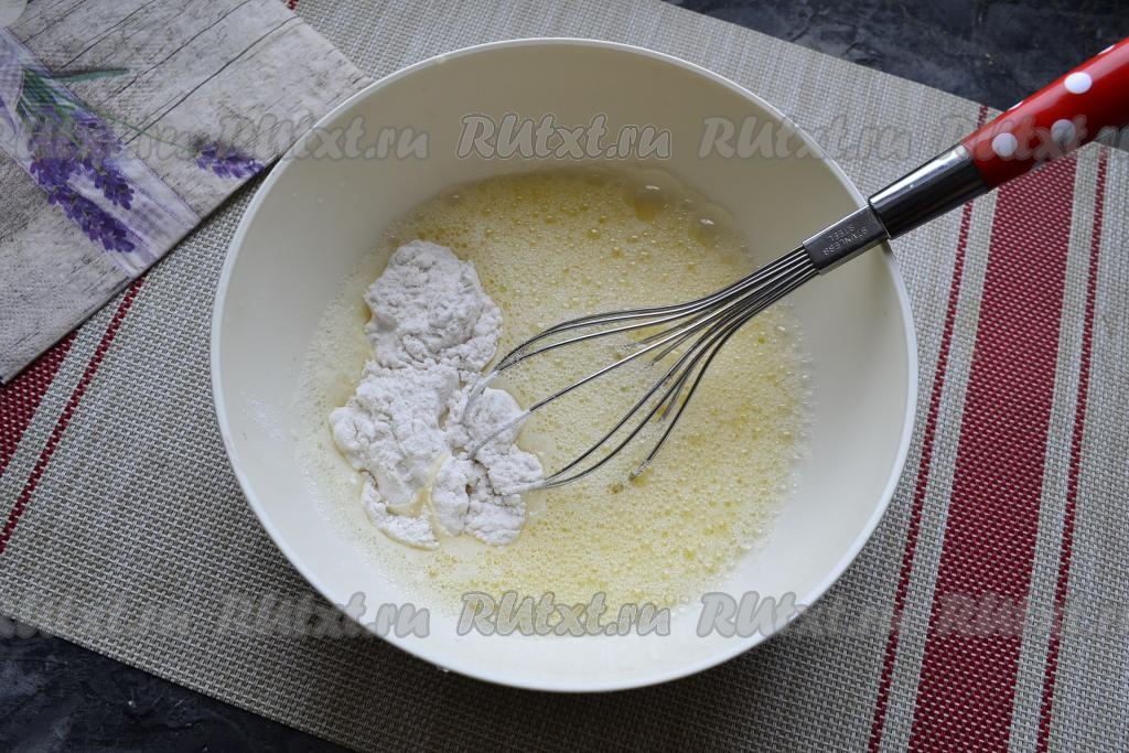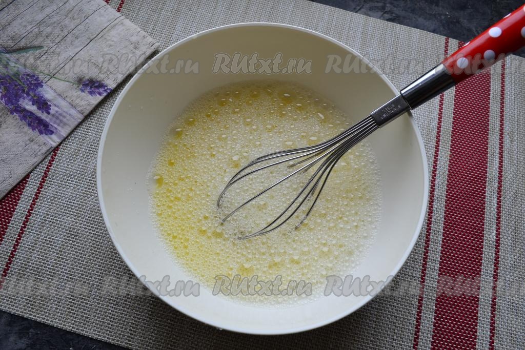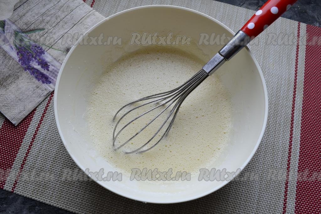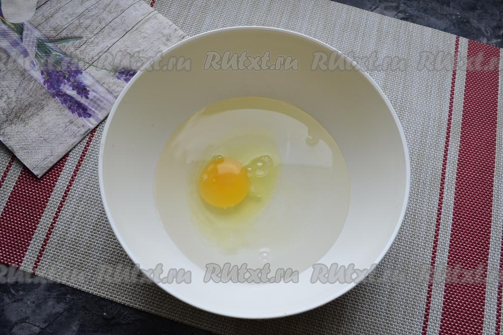В миску налить воду комнатной температуры, разбить яйцо, всыпать щепотку соли и добавить сахар.