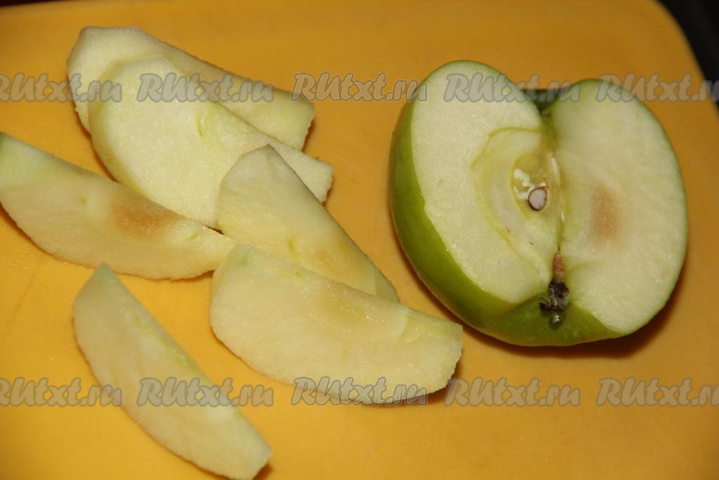 Яблоко почистить и нарезать на дольки.