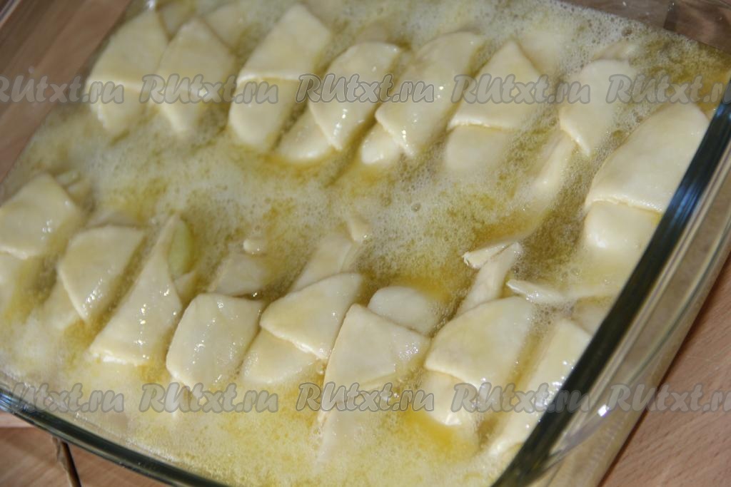 Духовку предварительно разогреть до 200 градусов. Влить в форму спрайт (благодаря тому, что напиток газированный, смесь, которой залиты слойки, "зашипит").