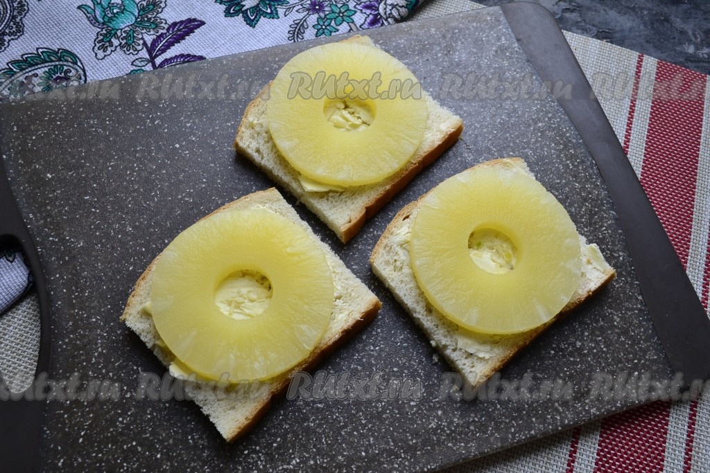 Если вы хотите к приходу гостей достаточно быстро приготовить вкусную и аппетитную закуску, тогда обратите внимание на этот рецепт. Горячие бутерброды с ананасом и сыром будут готовы за считанные минуты. В них отлично сочетаются хрустящая хлебная основа и сочный ананас, покрытый расплавленным сыром. Закуска получается очень нарядной. Ананас придаёт бутербродам лёгкую сладость и кислинку, а в сочетании с сыром приобретает интересный вкус. Уверена, это блюдо понравится не только женщинам, но и мужчинам, попробуйте!