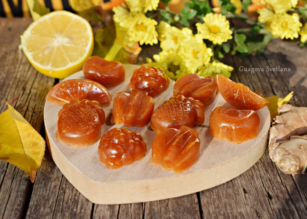В холодное время мы чаще подвержены простудам и различным заболеваниям, иммунитет снижается и часто банальная простуда оборачивается кашлем и болью в горле. Для того чтобы снизить боль в горле и облегчить приступы кашля, я готовлю домашние леденцы с имбирём и лимоном, о полезных свойствах которых знают даже дети. При рассасывании таких конфеток сразу ощущается облегчение, боль в горле отступает, а кашель становится мягче. В аптеке можно купить много подобных препаратов, но домашние леденцы, приготовленные из натуральных ингредиентов, я думаю, намного полезнее, да и получаются в разы дешевле. Попробуйте сделать такие леденцы в домашних условиях и будьте здоровы!