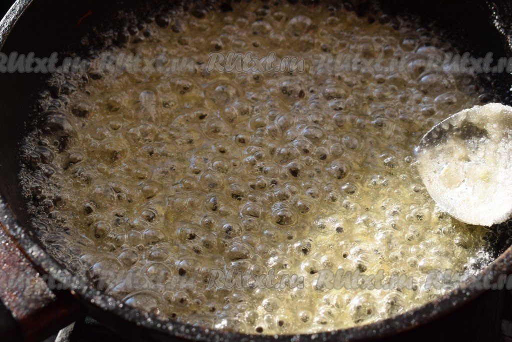 Когда карамель начнёт густеть и приобретать светло-жёлтый цвет, совсем немного увеличиваем огонь и варим леденцы ещё 20 секунд.