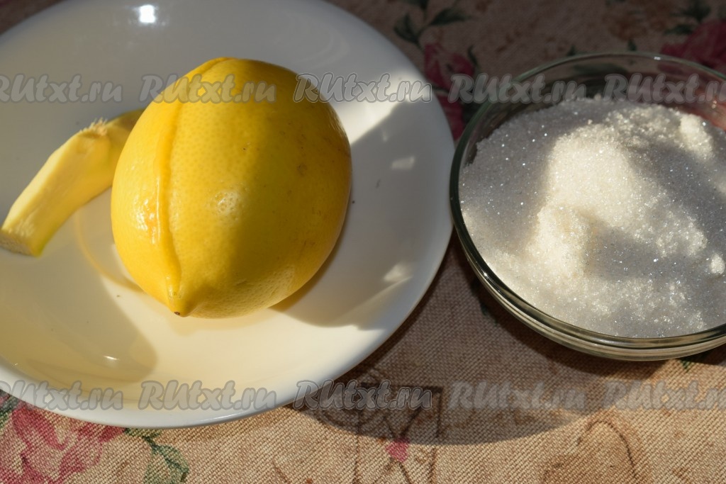 Имбирь очистим от кожицы. Лимон покатаем рукой об стол, чтобы в дальнейшем из него было легче выдавить сок. Отмерим 150 грамм сахара.