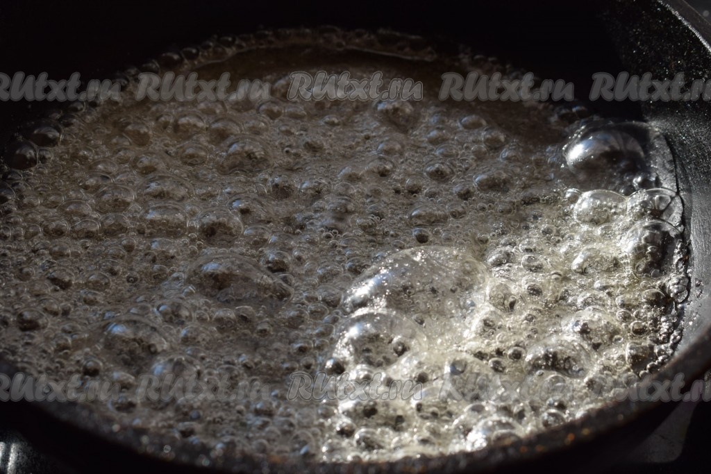 Увариваем карамель на медленном огне ещё 2 минуты, пока пузырьки не покроют всю карамель.
