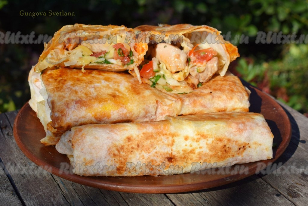 Не забываем подрумянить шаурму с бочков.