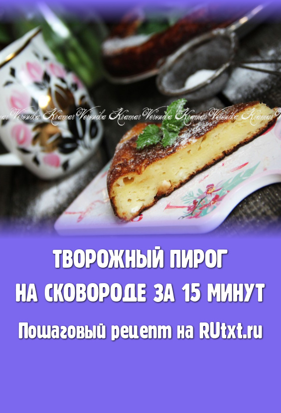 Готовую выпечку нарезать на кусочки и подать к чаю. Вот так просто, буквально за 15 минут, мы приготовили нежнейший творожный пирог на сковороде.