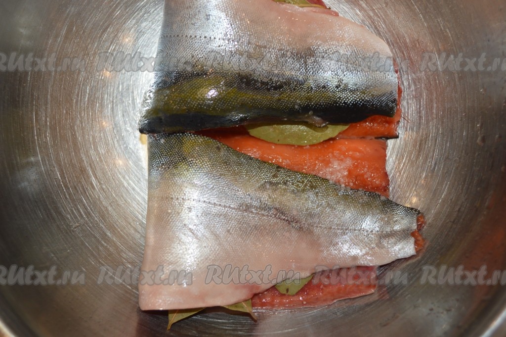 Сегодня предлагаю засолить в домашних условиях гольца. Эта красная рыбка ничуть не уступает по вкусовым качествам горбуше. Засоленный голец получается наивкуснейшим, просто тающим во рту. В этом рецепте всё делается быстро и достаточно просто. Для засолки этой красной рыбы вам понадобятся всего лишь соль и сахар, ещё добавим лавровый лист (он придаст аромат нашей солёной рыбке), можно, по желанию, использовать и специи по вкусу. Просаливаться голец 2-3 дня, а в результате у вас на столе будет вкусная, нежная красная рыба домашнего приготовления.