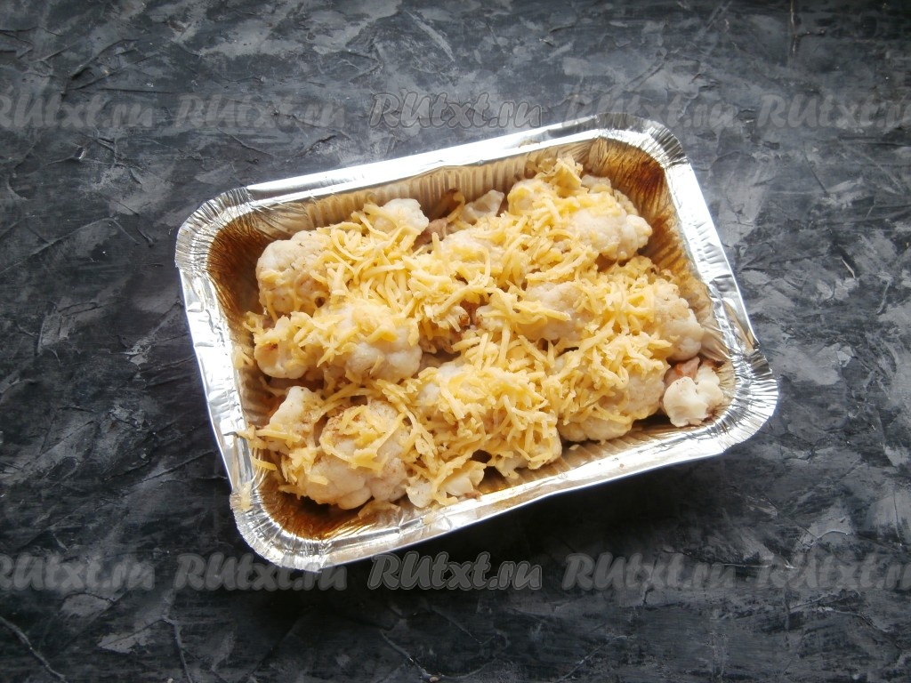 По прошествии времени блюдо достать из духовки и, сняв фольгу, посыпать натёртым сыром.
