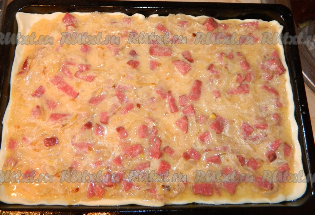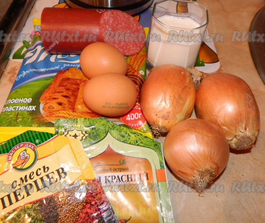 Вкусный и легкий в приготовлении луковый пирог из слоёного теста. И продукты для него почти всегда найдутся в холодильнике. Так что если неожиданно нагрянули гости, можно быстро и без особых усилий приготовить этот пирог. Приятного аппетита.
