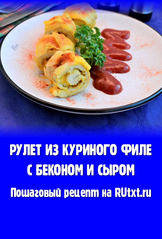 Очень вкусный, сочный куриный рулет, приготовленный с сыром и беконом в духовке, к столу подавать горячим с любимым соусом или гарниром.