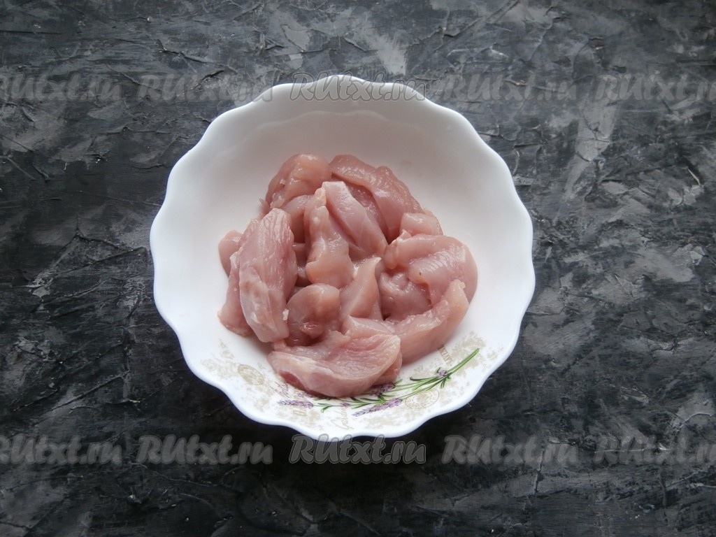 Лук и чеснок очистить, из болгарского перца удалить семена. Филе индейки нарезать небольшими, продолговатыми кусочками.
